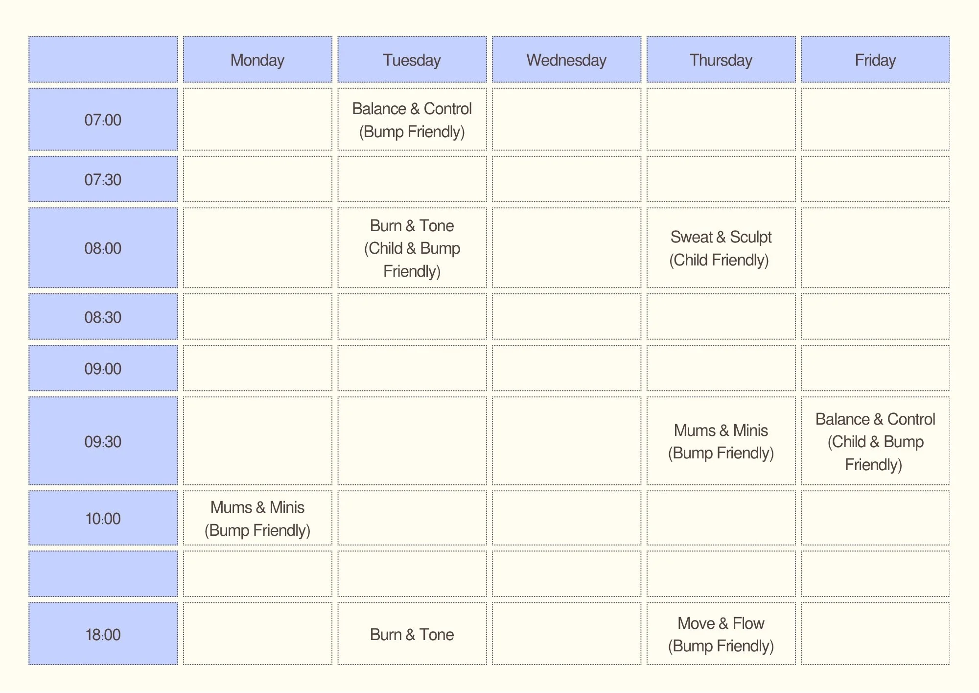 Child Friendly classes are our regular 45minutes small group classes that allow mums/parents/caregivers to bring children/babies to the class. See ‘Child Friendly’ on the schedule. Please note these classes are NOT able to be booked with the ‘Mums & Minis’ discounted class prices.